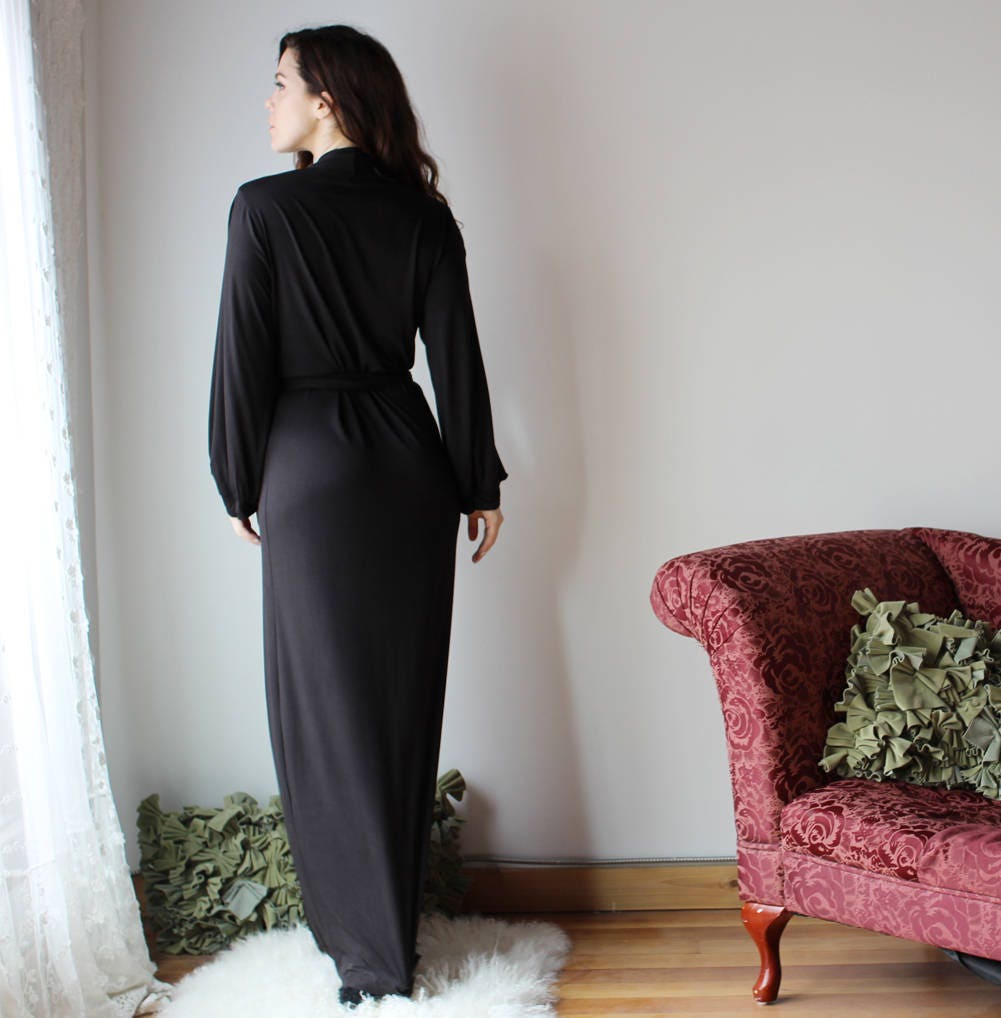 long bamboo jersey robe with wrap style belts and bishop sleeves